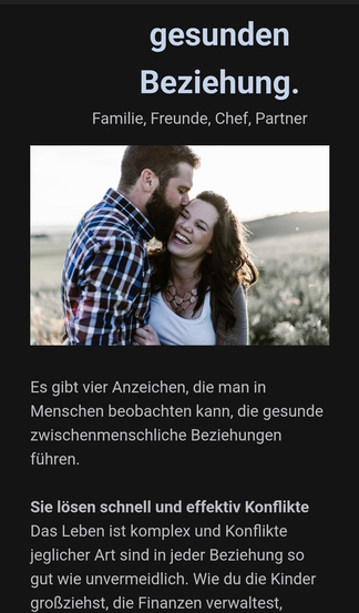 Ich verhelfe mutigen Menschen zu einer besseren Version ihrer selbst und zur Entwicklung ihres vollen Potenzials, um gesunde Beziehungen führen zu können.